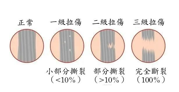 (B)肌肉拉傷分3個等級,一級拉傷最嚴重