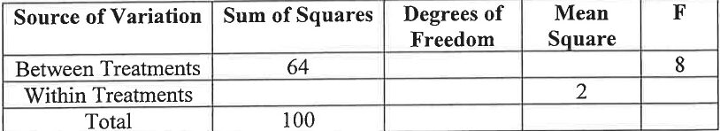 24.Part of an ANOVA table is shown below.