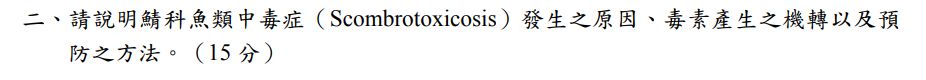 25 某公司中餐供應的餐盒中有旗魚排,部分員工食用約 0.5~1 小時後紛紛出現身上起紅疹、搔癢、