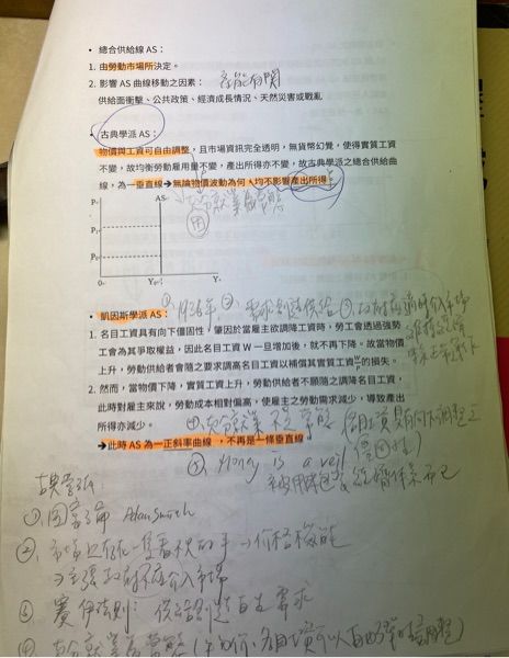 25.古典學派與凱因斯學派對於總合供給線的形狀,有不同的主張,因為: