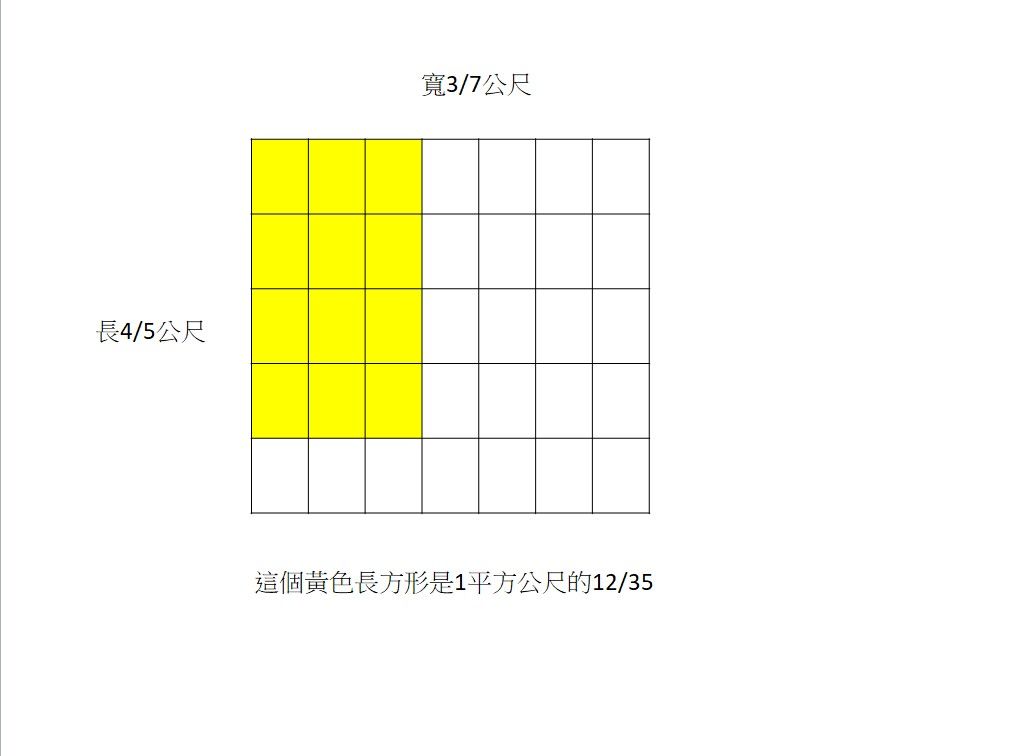 丁說:「分子乘分子,是算有 12 個 1/35 平方公尺的意思。」