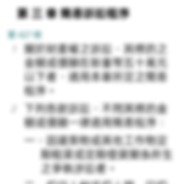 民事簡易訴訟程序是為了快速審理標的金額輕微或案情單純的民事案件而設的程序,主要特色包括由地方法院簡易庭審理、審理程序簡化(例如原則上一次開庭)、訴訟標的金額在 50 萬元以下可適用,並在部分案件中納入強制調解程序。其目的在於降低訴訟時間成本與司法資源,提高效率。