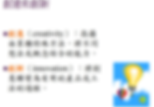 創新:將創意付諸於有用的商品.服務的程序並透過此程序使組織獲得經濟上的意義