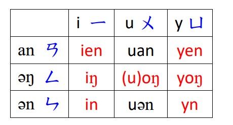 這就是在考結合韻的音變,共有7個,就是下圖紅色的部分,一張圖解決。