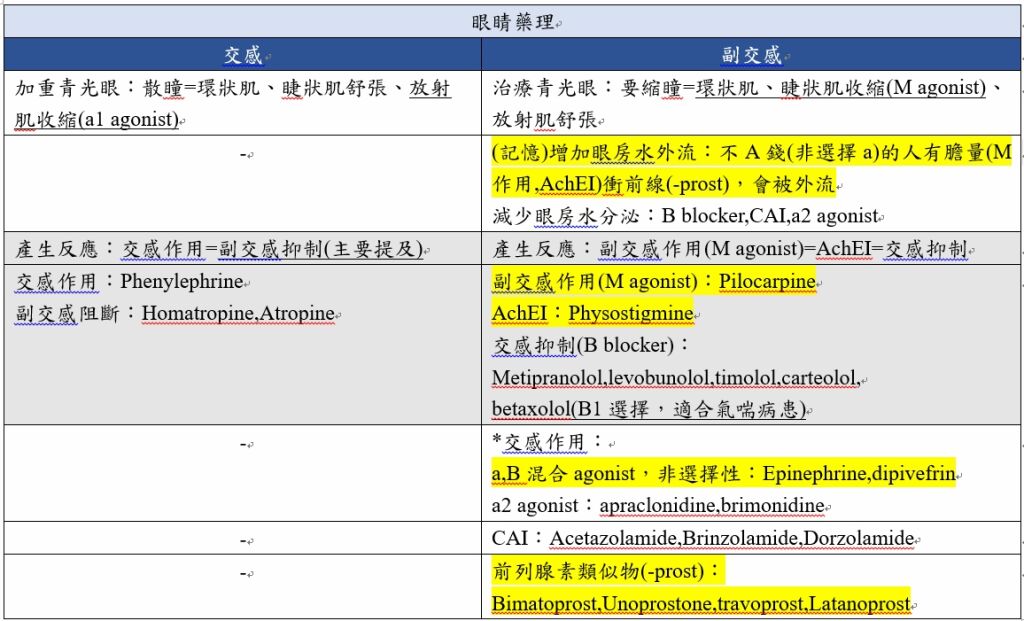 讓人放鬆就是副交感 EX: 很亮的時候 (醫生檢查病人瞳孔會照光,正常瞳孔會收縮,不會收縮就嚴重了)