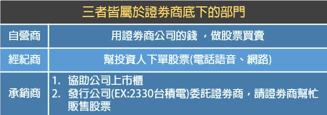 經紀商、承銷商、證劵商,三者的比較!