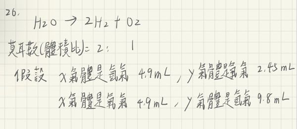 (C)若 Y 氣體為氧氣,體積約為 4.9 mL