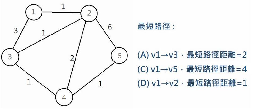 27 給定{v1, v2, v3, v4, v5}鄰接矩陣(adjacency matrix)如下,則 v1 到其他各點(可以經過別的點)的最短路徑距離何者正確?
