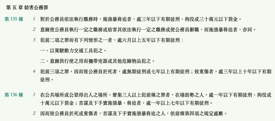 對於公務員依法執行職務時,施強暴脅迫者,處三年以下有期徒刑、拘役或三十萬元以下罰金。