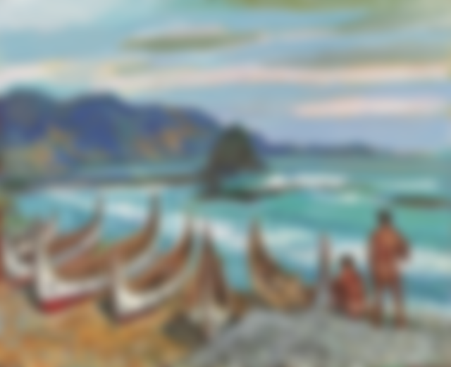 顏水龍蘭嶼風光油彩 畫布1991年作高...