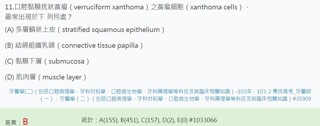 (D)黃瘤細胞,最常出現於黏膜下層(submucosa)