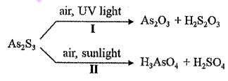 27. Oil painting typically involves a variety of inorganic pigments. Studies have found that under different humidity and light conditions in air, the fading of the pigment orpiment (As2S3) is mainly due to the following two chemical reactions (I and II):