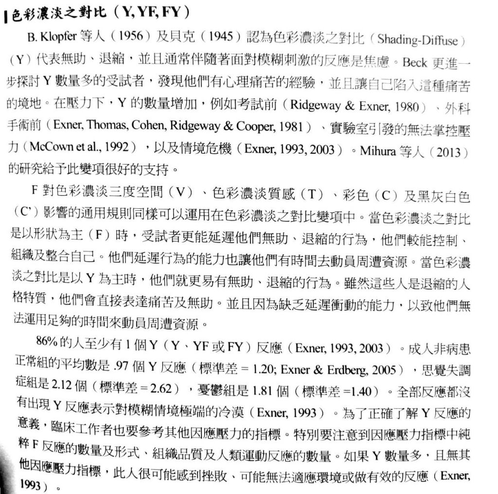 色彩濃淡之對比Y代表無助、退縮且通常伴隨...