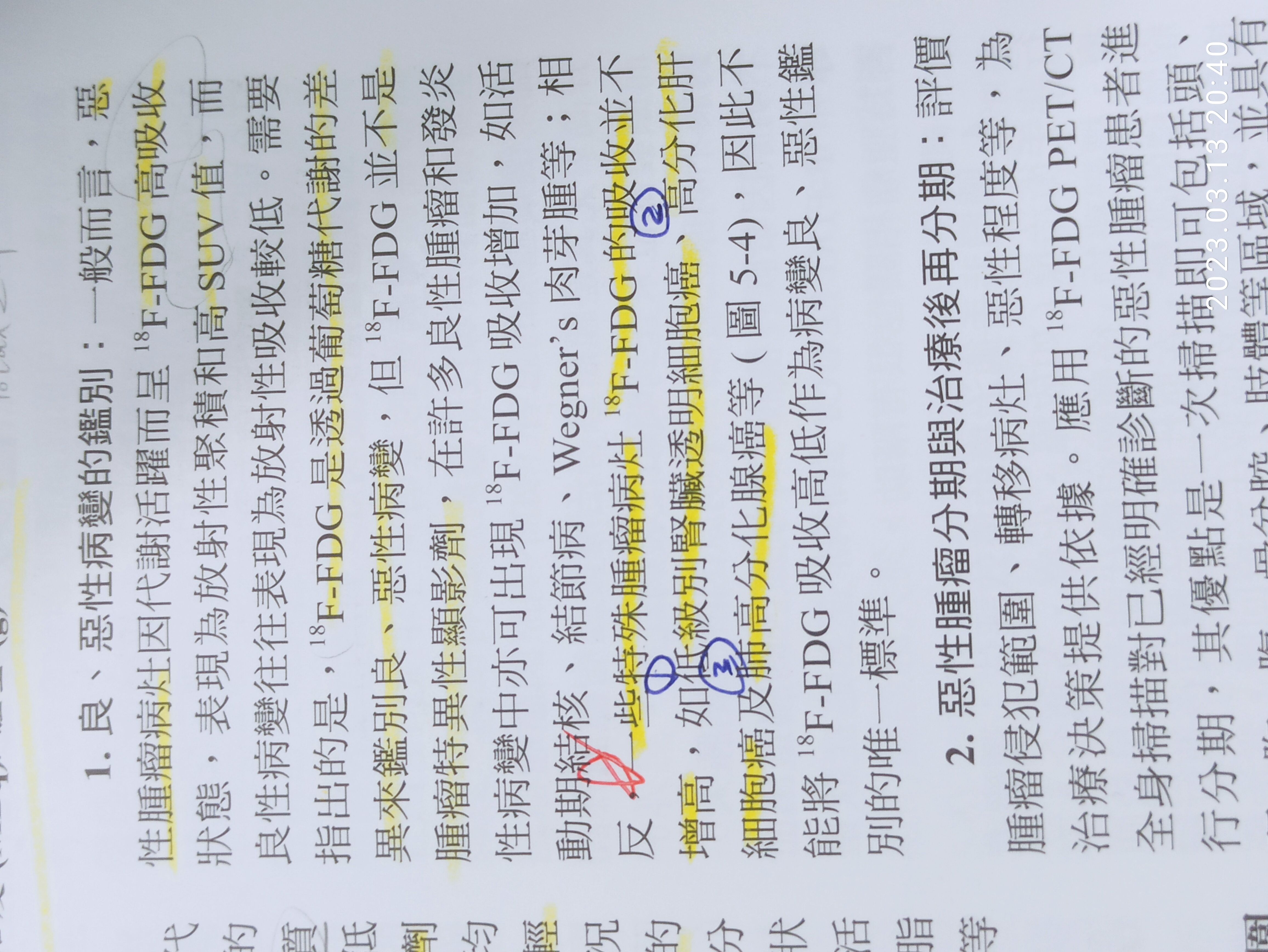 相反地,一些特定的腫瘤病灶不會增加F-FDG吸收量,如低級別腎臟透明細胞癌、高分化肝細胞癌及肺高分化腺癌等。因此,F-FDG吸收量的高低不能作為區分良性和惡性病變的唯一標準。以下為資料來源: