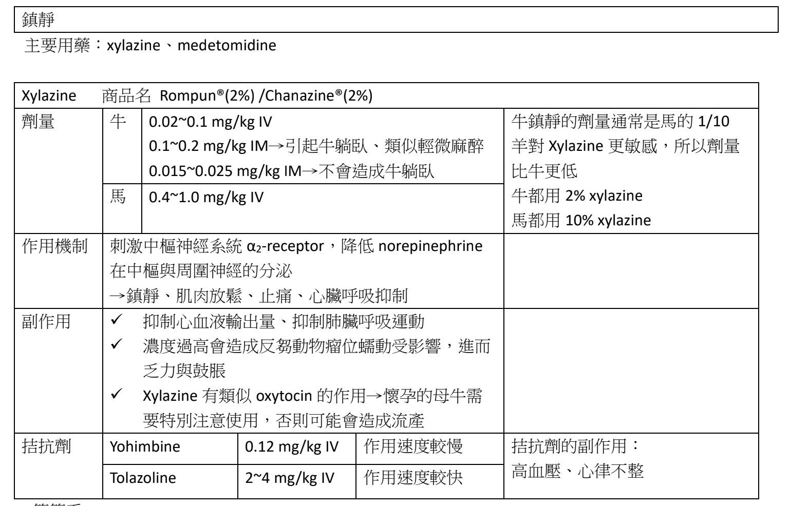 (A)0.6 mg/kg xylazine 及 11 mg/kg ketamine,IM