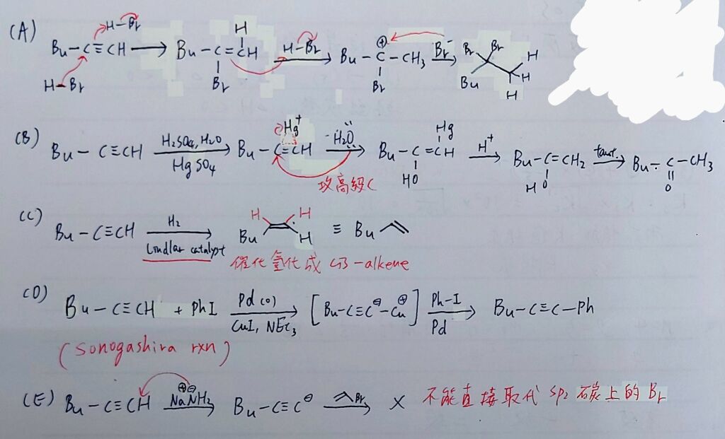 28. 下列關於 1-己炔 (1-hexyne) 的化學反應何者正確?
