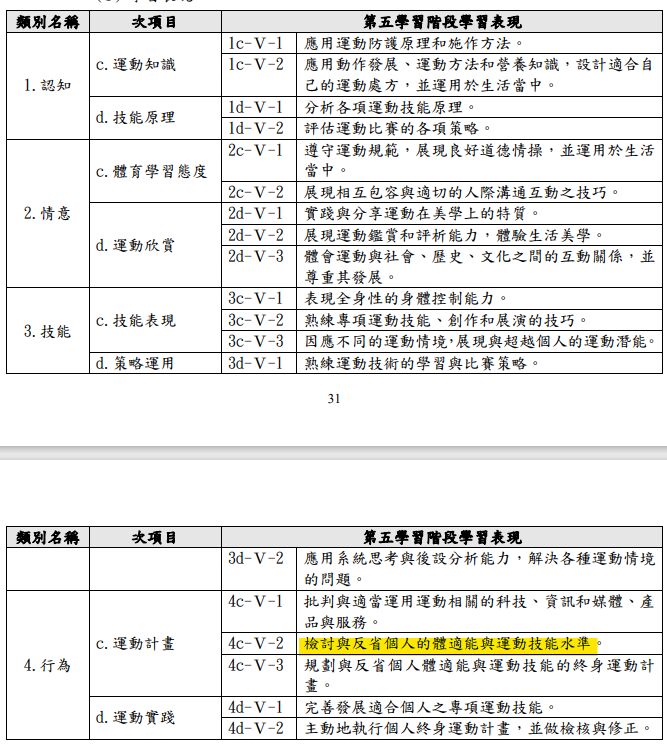 28. 關於《十二年國民基本教育課程綱要總綱》中第五學習階段體育科學習表現中的行