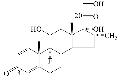 重新載圖B17 由dexamethasone(結構如下)之KBr錠,所得紅外線吸收光譜,主要吸收帶(band)為A: 3140-3600 cm -1;B: 2750-3122 cm -1;C: 1705 cm -1;D: 1655 cm -1;則此A吸收帶最可能為下列何基團之吸收?