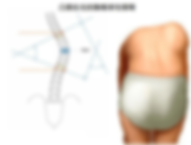 (C)胸椎椎體會轉向左側,彎腰時可以發現左側背部的肋骨會往後高起,胸椎棘突會朝向右側