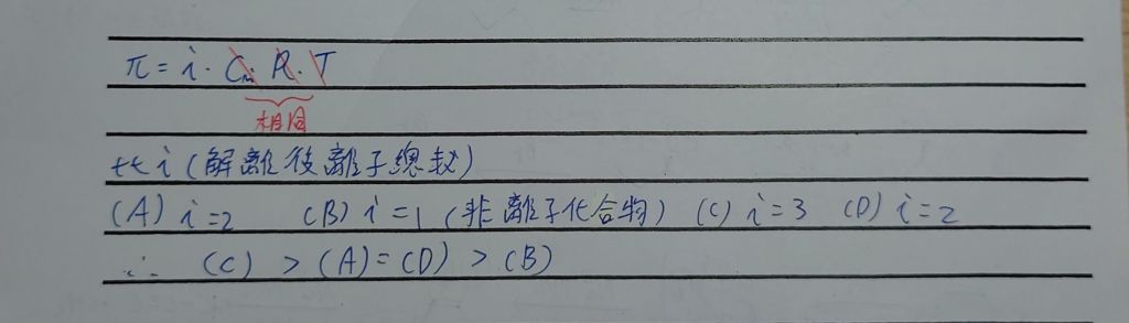 29. 下列水溶液在室溫(25°C)下,何者具有最高滲透壓?