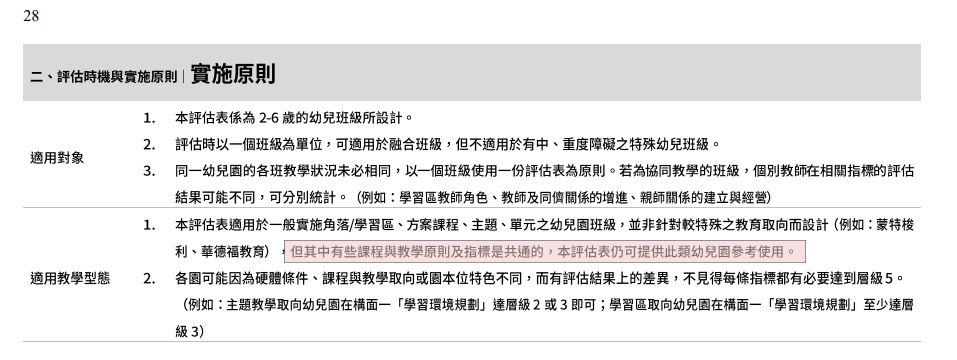 C-品質評估表並非針對較特殊之教育取向去設計的,如:蒙梭、華德福。「只是」有些共同的地方還是可以使用。