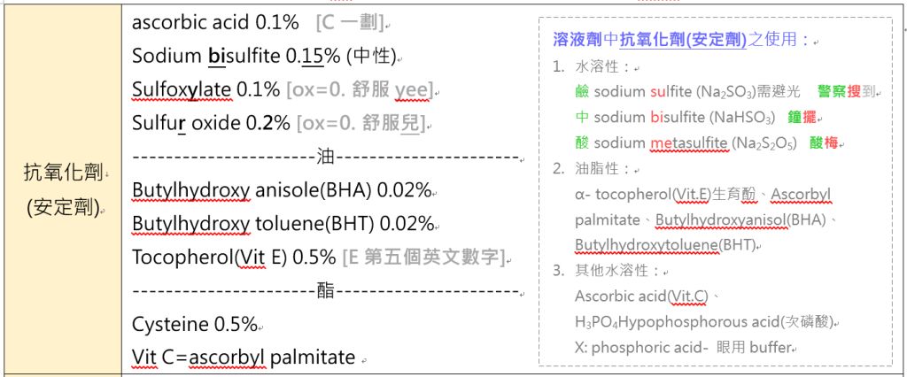 (D) disodium edetate是眼藥水常用的抗氧化劑