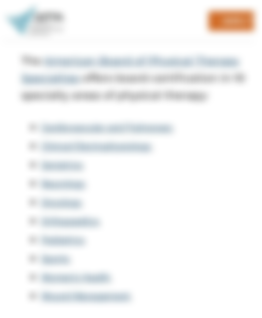 根據美國物理治療學會(American Physical Therapy Association, APTA)的制定,目前共計九大專科認證: