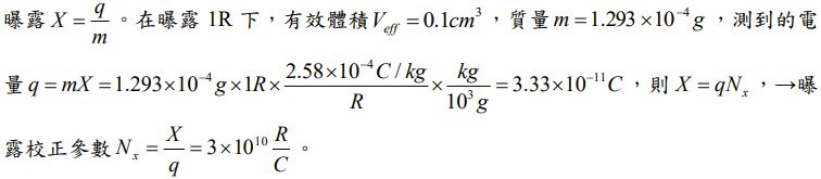 3. 使用游離腔作為劑量量測工具,假設游離腔的空腔有效體積為 0.1 cm3,空氣密度為 g/cm3,在荷電粒子平衡(charged particle equilibrium)的情形下,其曝露校正參數(exposure calibration factor)Nx約為多少 R/C? (A) 2.5×109 (B) 3.2×109 (C) 5.4×109 (D)
