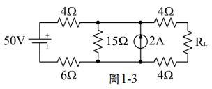 3. 如圖1-3 所示電路,欲獲得最大功率轉移,則RL電阻為?