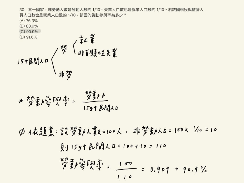 人口數也是就業人口數的 1/10,該國的勞動參與率為多少?