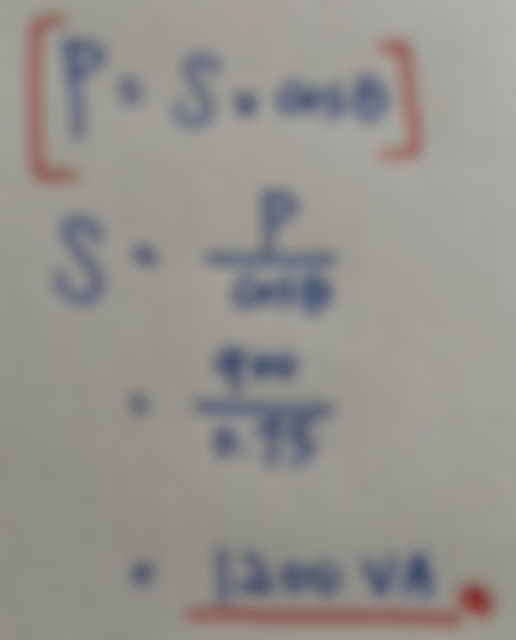 31.某 220V 的配電系統中,已知接上負載後之平均消耗功率為 900W,功率因數為 0.75,則視在功率