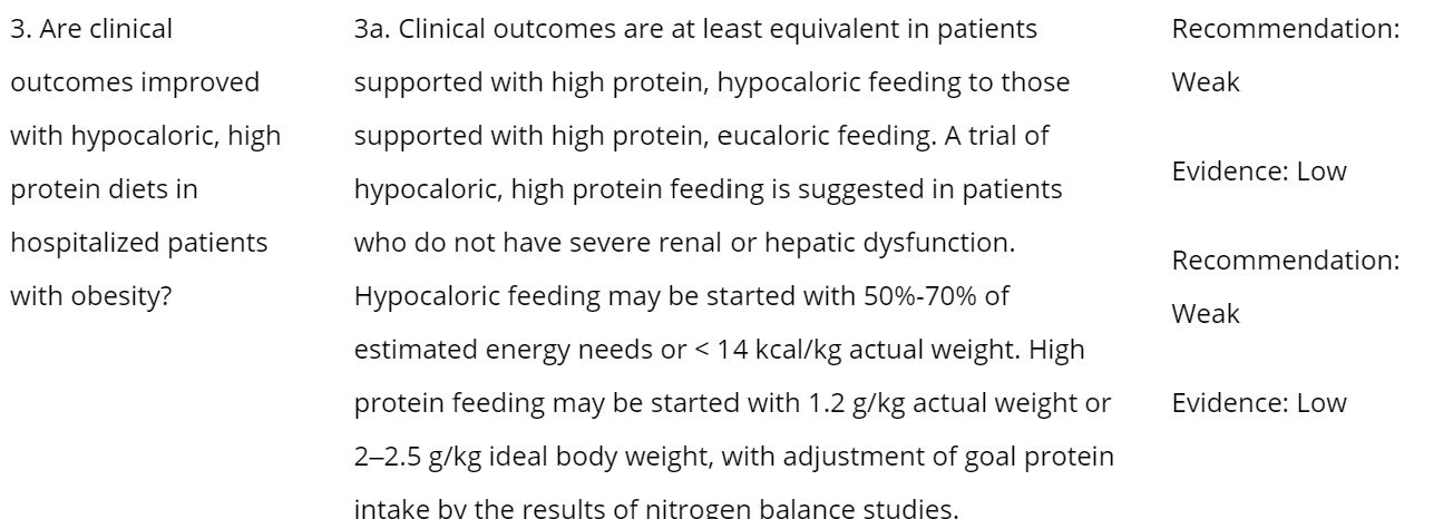 高蛋白灌食可以從 1.2 g/kg 實際體重或 2-2.5 g/kg 理想體重開始,根據氮平衡調整患者蛋白質攝入量。