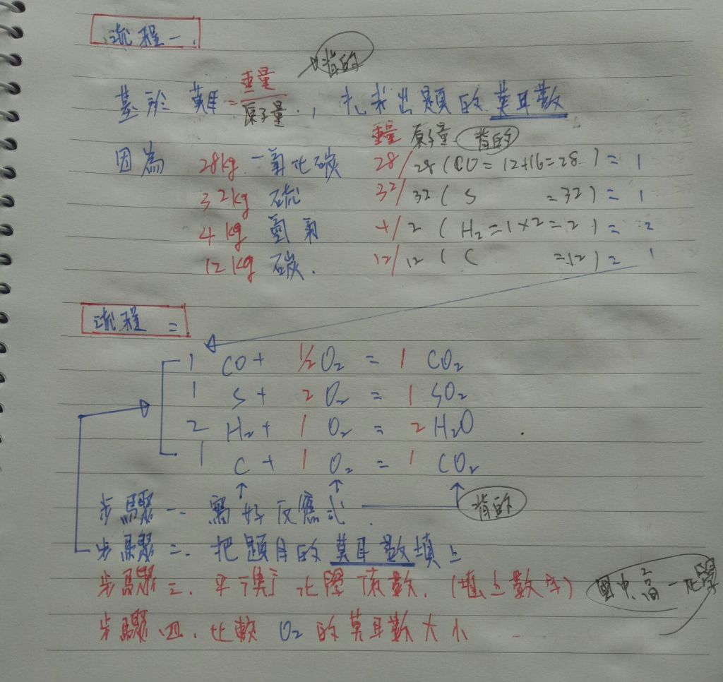 莫耳數=重量/原子量,要背,簡單的反應式,要背,