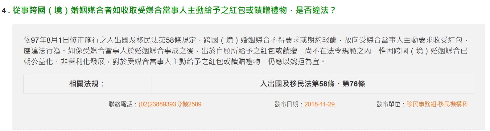 跨國(境)婚姻媒合不得要求或期約報酬。