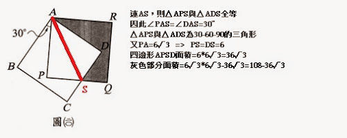 32. 圖(廿)是兩全等的正方形ABCD與APQR重疊情形。若∠BAP=30∘,