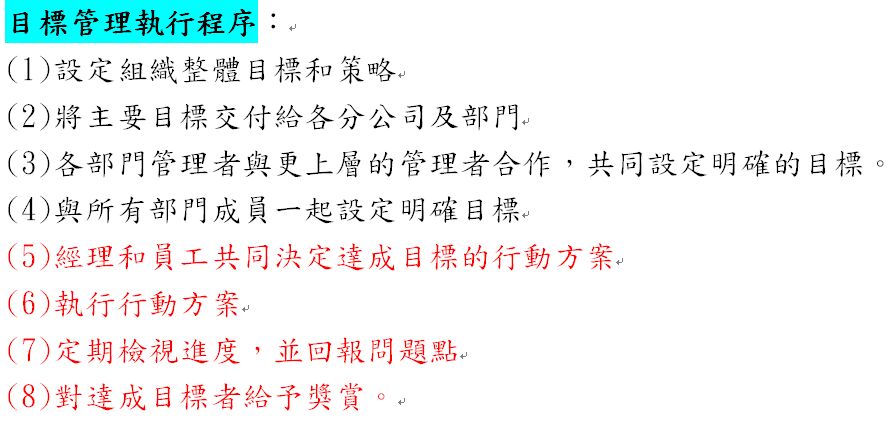 目標管理之步驟如下: