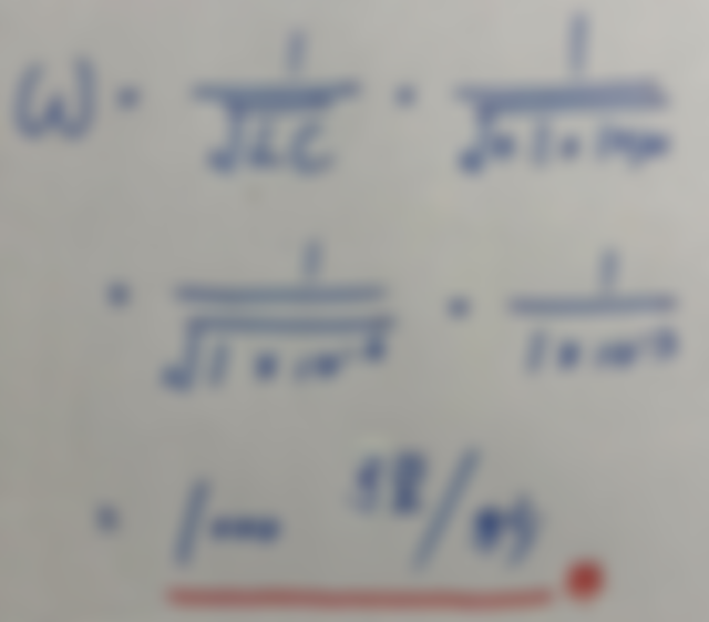 32.接於200V交流電源之RLC串聯電路,其中L = 0.1H,C = 10μF,R = 2Ω,則諧振角速度 ω為多少?