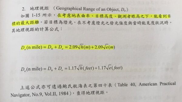 32. 一燈塔高於海平面81公尺,觀測者眼高16公尺,則此燈塔之地理視距多少浬?