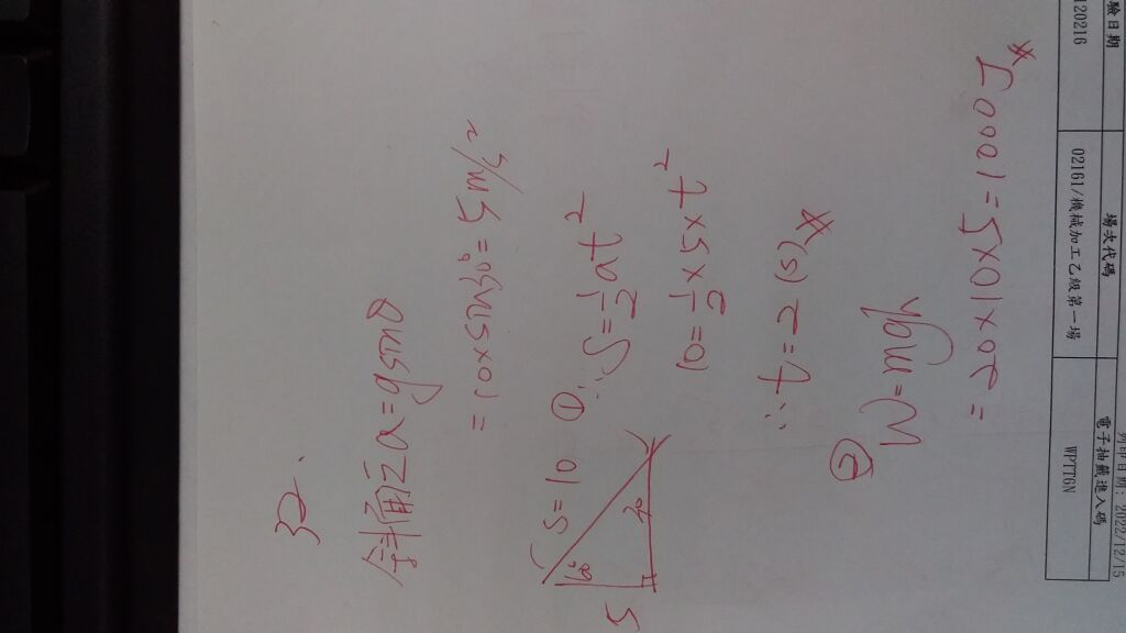 32. 如圖 ( 十五 ) 所示,在某遊樂園滑水道設施中,有一位質量 m 為 20 kg 的小朋友自靜止 狀態,沿著傾斜角 θ 為 30o而高度 H 為 5 m 的滑水道頂點往下滑,如果不考慮水的阻力和 所有摩擦力等因素,則從滑水道頂點下滑到滑水道底部所需的時間 t 為多少秒?在此同時下滑力所作的功W為多少N-m?(假設重力加速度=10m/s2)
