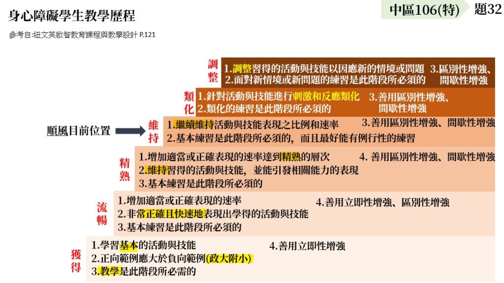 32. 順風是位重度智能障礙學生,他好不容易學會擦桌子,姚老師希望這個技能可以繼續維持與保留下來,請問下列哪一種策略的使用最