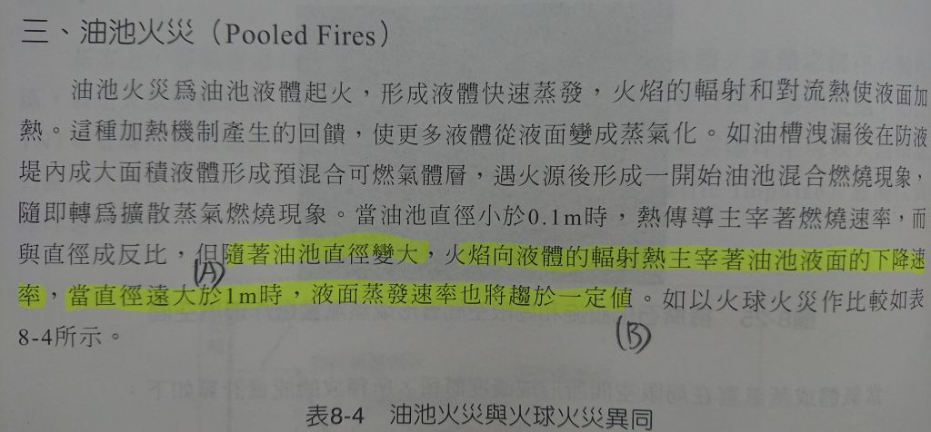 (A)隨著油池直徑變大,火焰向液體的輻射熱主宰著油池液面的下降速率