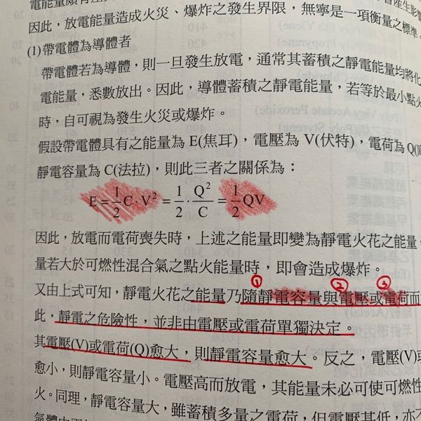 33.某靜電帶電體之電壓為30伏特,電荷量為10庫倫,試問該帶電體之放電火花能量為多少焦耳?