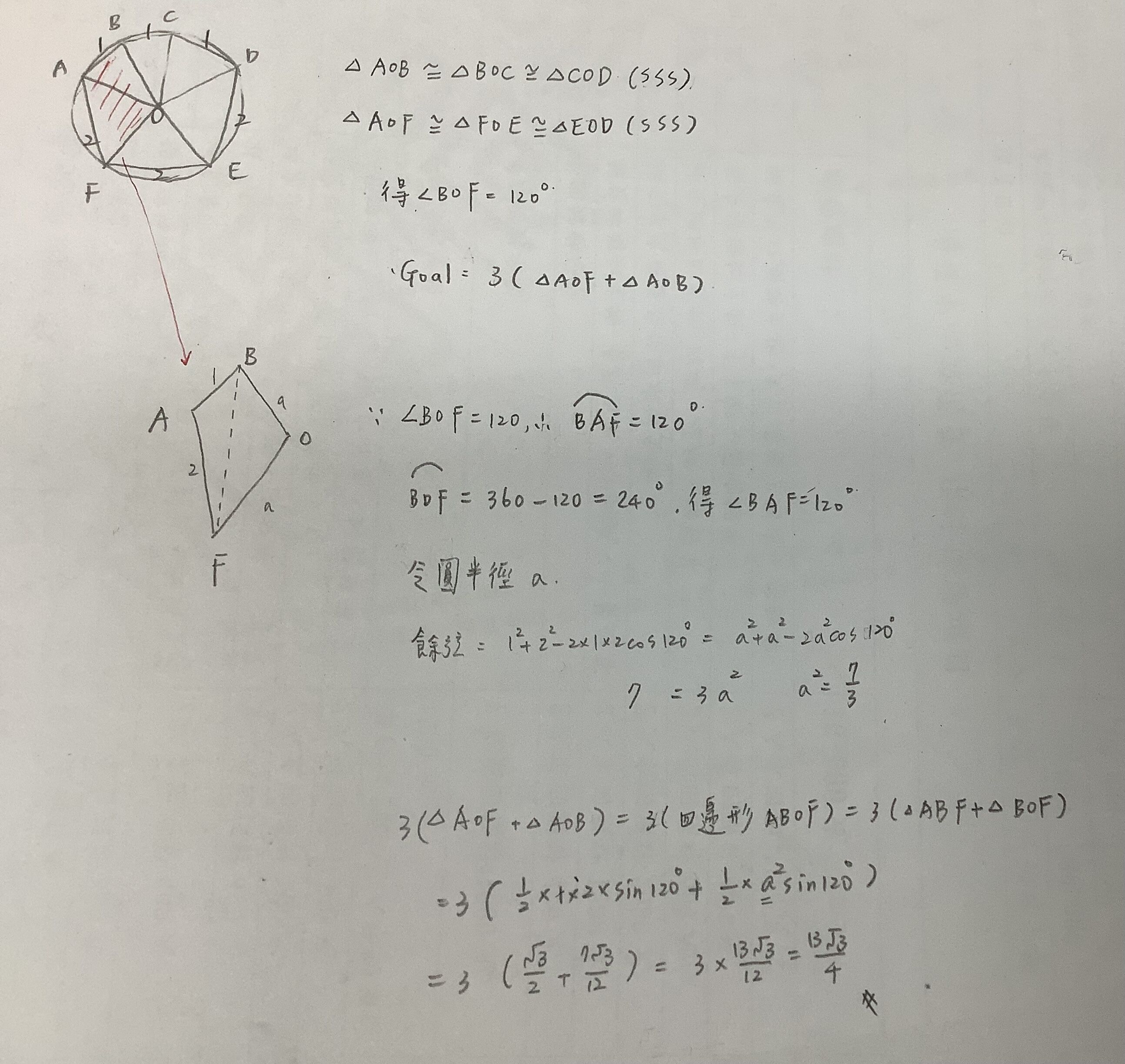 33. 某圓內接六邊形 ABCDEF,其中