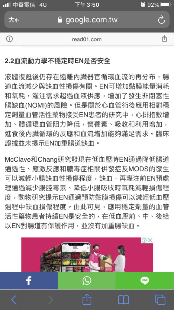 對於選項 ④血液動力學不穩定時要暫停腸道營養,改給靜脈營養的補充說明節錄