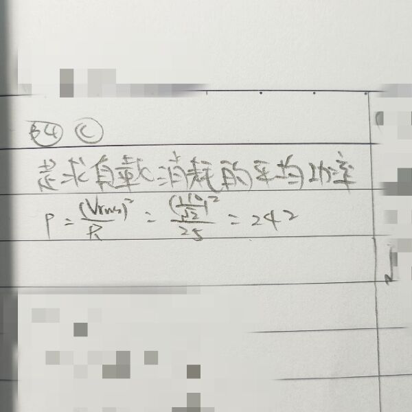 34 設一 25 歐姆之電阻負載,連接至 110sin(377t + 30°) 伏特之交流電源,則此負載所消耗之平均功率為多少瓦特?