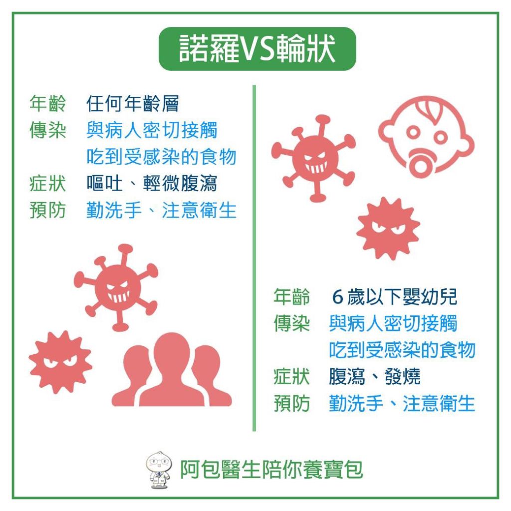 輪狀病毒主要感染的族群為5歲以下的幼兒;同樣可以引起病毒性腸胃炎的諾羅病毒,則是每個年齡層的人都有機會被感染。