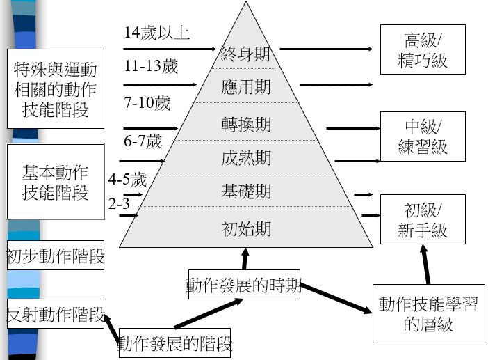 34. 加拿大曼尼托巴(Manitoba)省體育課程專家將動作發展分為六個過程,其動作發展的順序,下列何者為正確?
