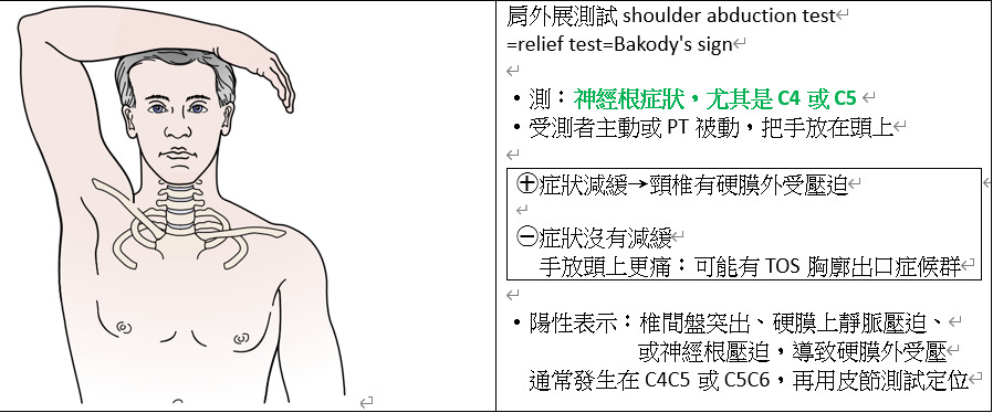 (C)頸神經根疼痛患者通常手舉起高過頭部時,症狀會加劇