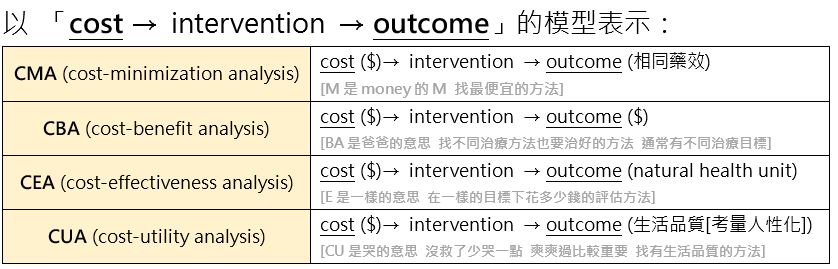 資料來源:藥物經濟學簡介。http://rx.mc.ntu.edu.tw/myDOP/RENOUVELER/MAGAZINES/65/65_04.pdf。
