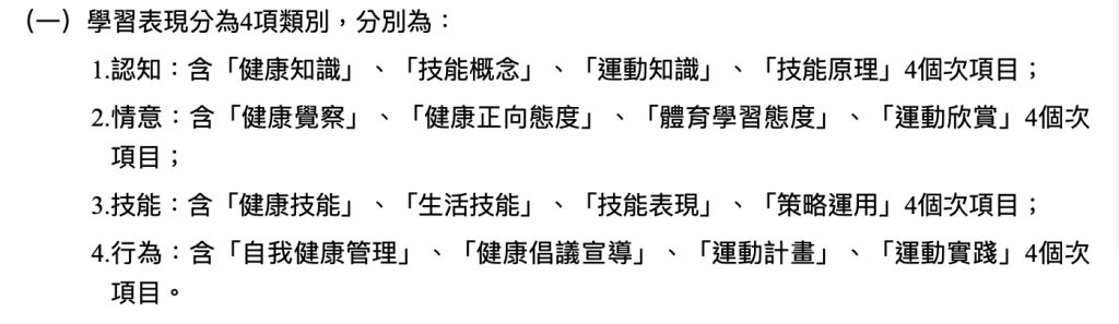 35. ①運動計畫②運動實踐③運動欣賞④運動知識。上述十二年國民基本教育健康與體育領域課程綱要中之學習表現項目,請問哪幾項是屬 於「行為」類別學習表現?